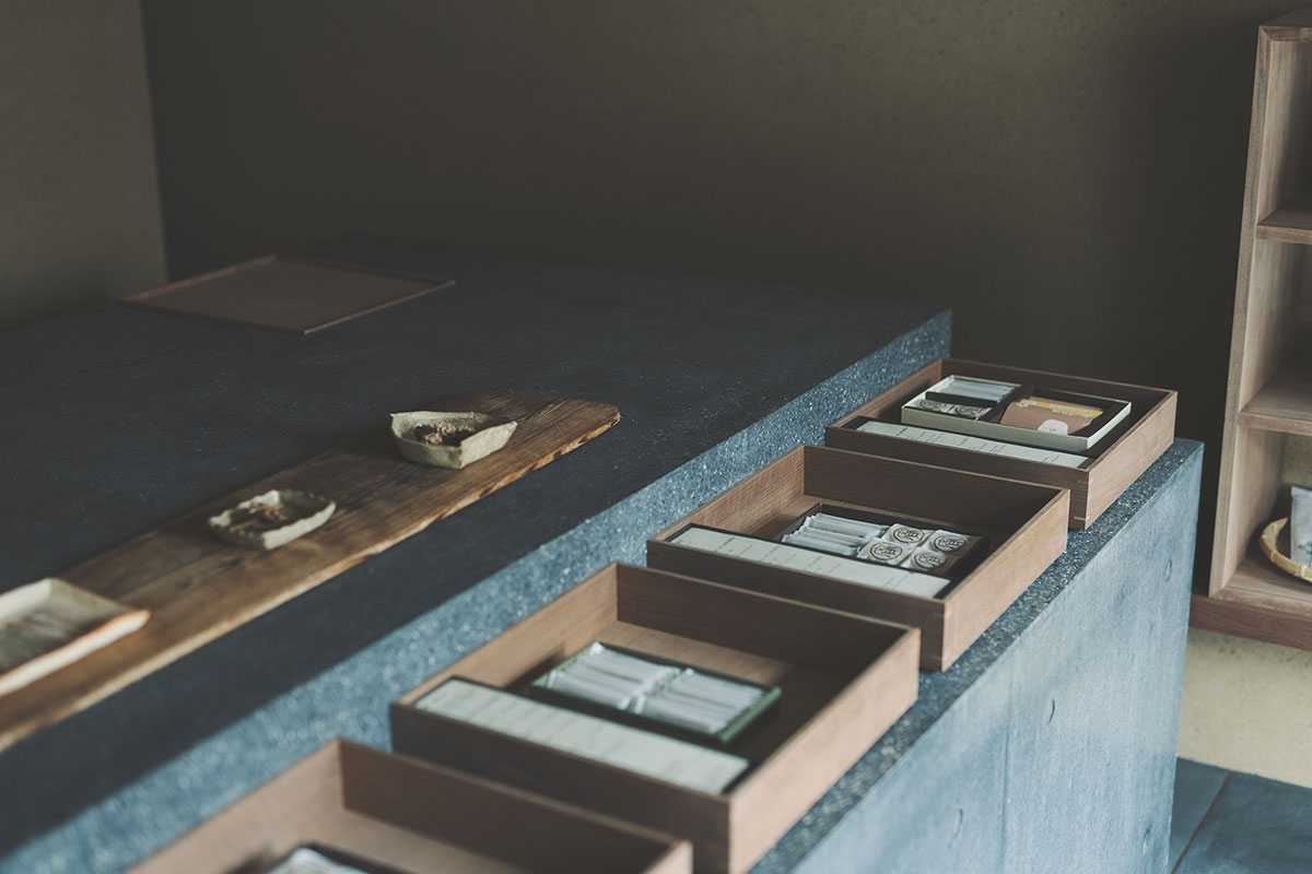 Guests here are greeted by the historical machiya appearance, a traditional style of architecture unique to Kyoto. This wooden building built in the early Meiji period has watched over Owariya from the time of its establishment. Guests enter the building walking under the evergreen magnolia tree and through the “takara (treasure)” shop curtain at the entrance. On the first floor, there is table seating, as well as a tea room (tatami room), while on the second floor, both table seating and tatami banquet rooms can be found. Enjoy the great taste of soba and sweets in a relaxed atmosphere. All seats are non-smoking at all times.